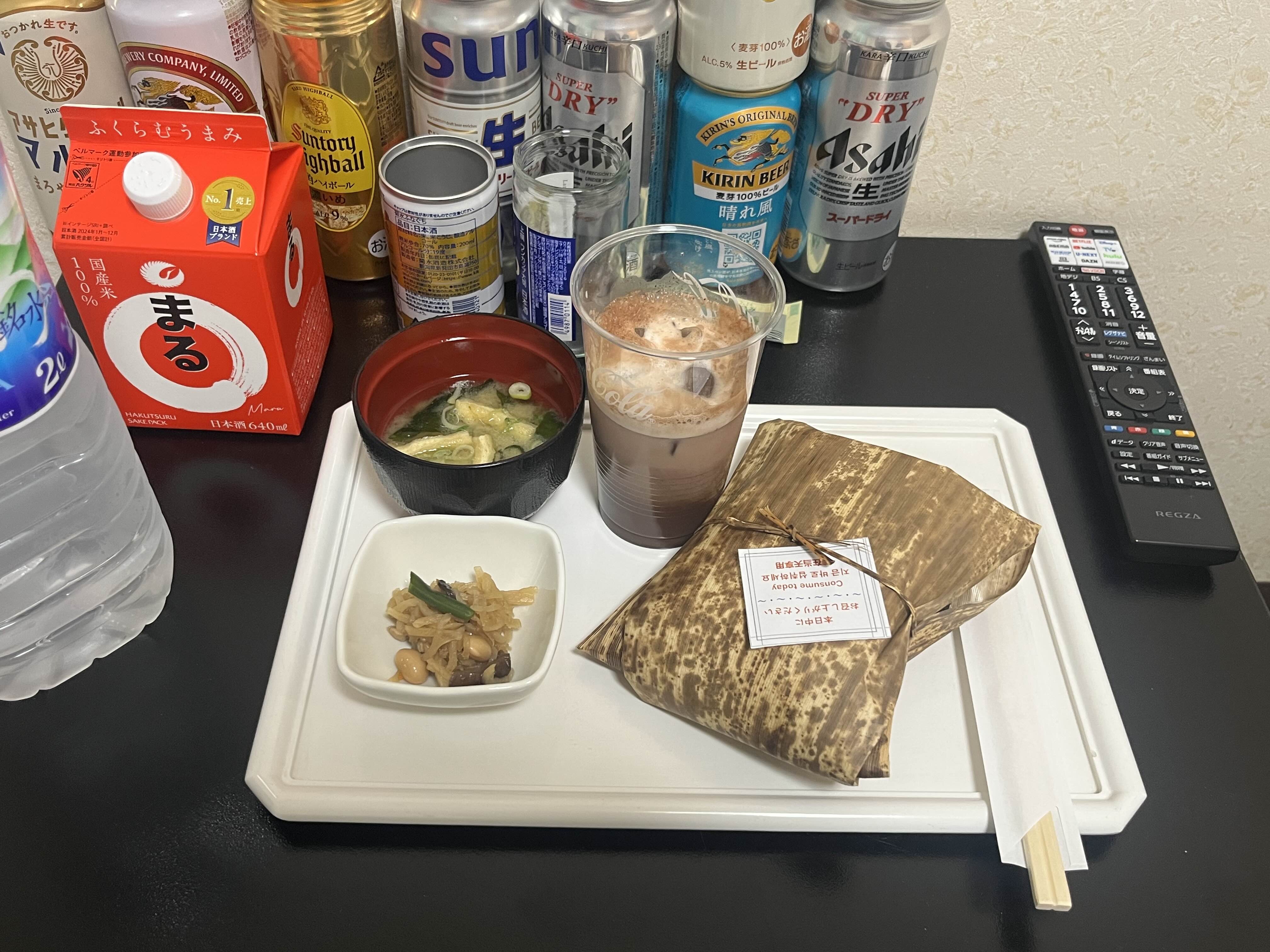 이 날은 전날 이자카야에서 술을 너무 많이먹어서 조식을 방으로 들고와서 먹었다.