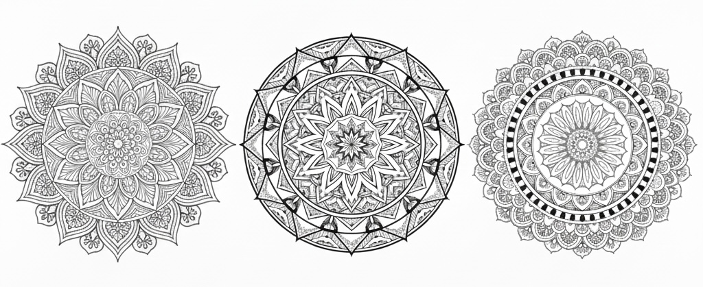 가운데 중요한 핵심이 있고 바깥쪽으로 질서있게 퍼져가는 만다라 문양의 모습이 중앙에 가장 중요한 목표가 있고 주변에 세부계획을 적어넣는 만다라트 계획표의 모습과 닮았다.